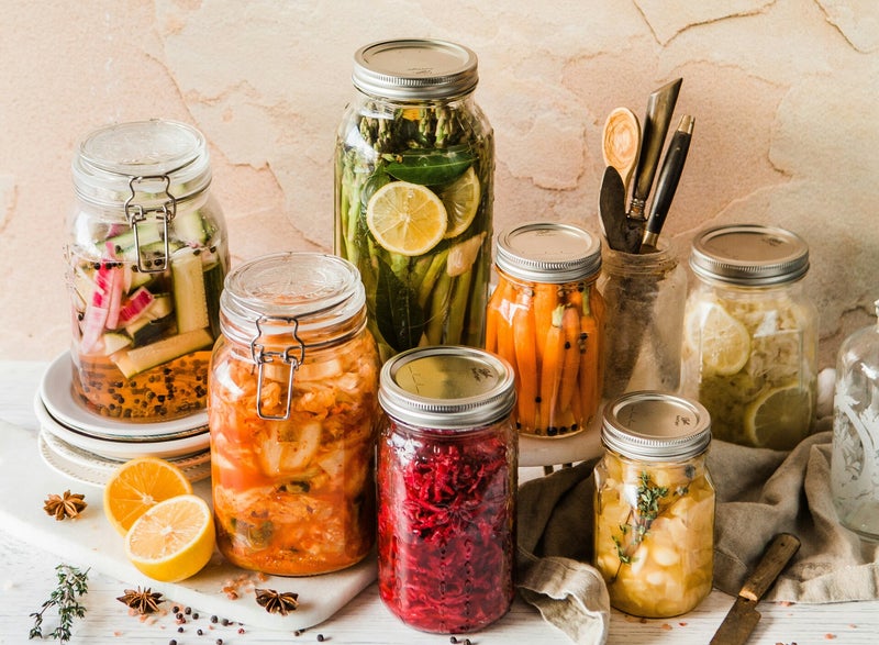Gefermenteerde groenten zoals zuurkool, kimchi en gefermenteerde augurken zijn rijk aan probiotica.